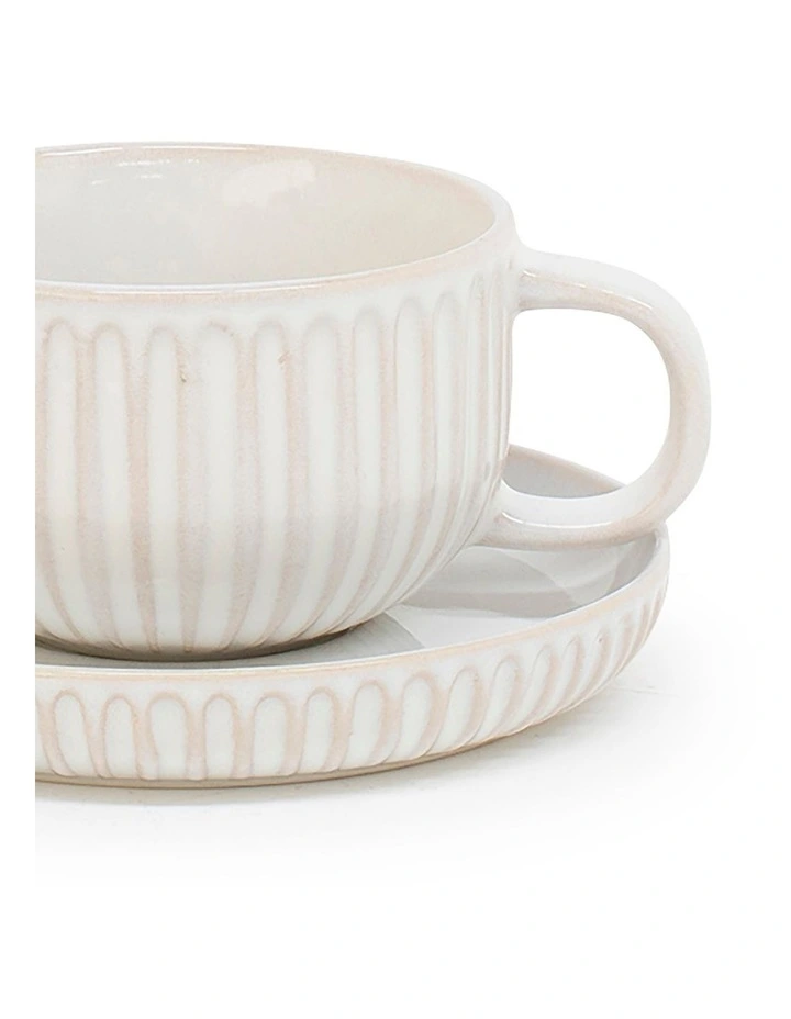Created from stoneware with soft organic forms and hand carved rib textures is salt&pepper’s Amana Tea Cup & Saucer. With a distinctive glossy white finish, this 240ml tea cup and matching saucer is ideal for enjoying your daily tea ritual and has a hand applied reactive glaze resulting in no two pieces being the same. Spread earthy colours and textures throughout with coordinating pieces from the Amana collection to set the tone throughout your home.