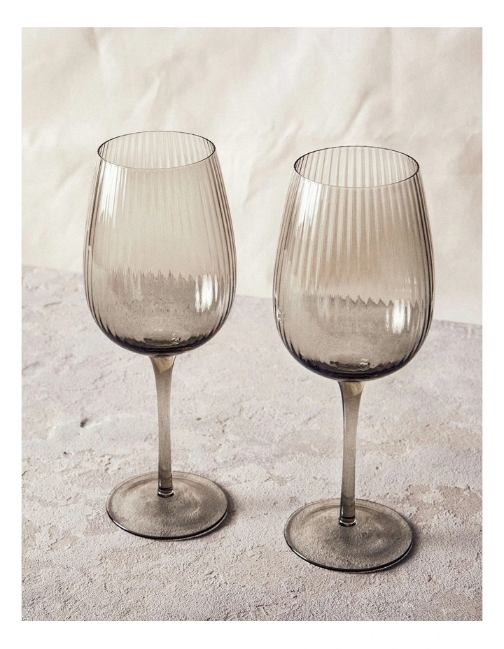 Crafted from smoky grey glass with a unique rib effect is the Amana Wine Glass Set from salt&pepper. With a modern shape and organically curved style, this set of four 540ml wine glasses is ideal for an evening drink with dinner or more formal affair with guests. Spread earthy colours and textures throughout with coordinating pieces from the Amana collection to set the tone throughout your home.