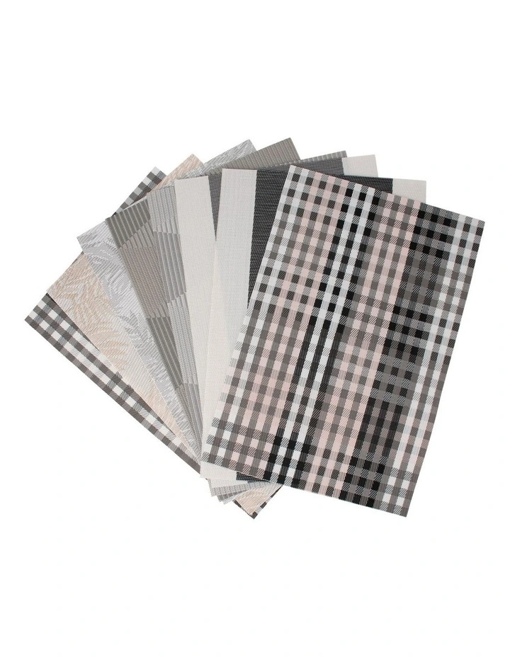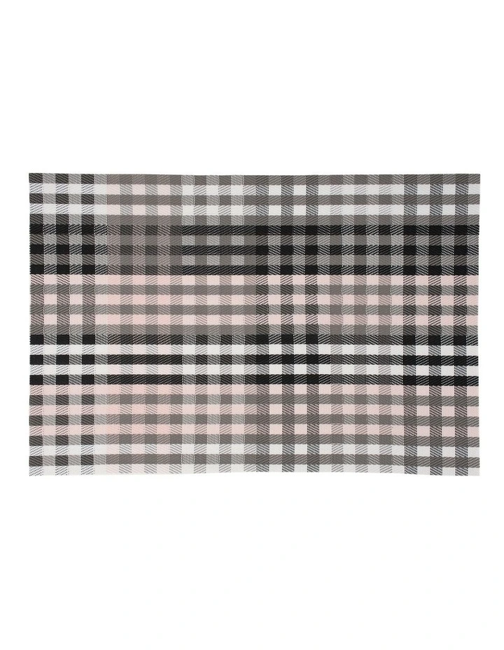 - Versatile patterned placemat with pink check design in a neutral palette for easy styling