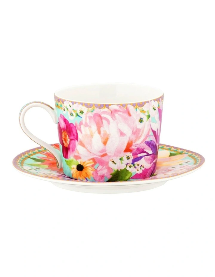 This sky blue Dahlia Daze cup & saucer set brings luxury to the table. Part of the Teas & C’s collection, it features a sumptuous design inspired by fashion and nature. Made from quality porcelain, this beautiful set includes a 240ml teacup and matching saucer, just right for your favourite morning coffee moment, right through to a catch up with friends. With a palette of rich contemporary colours, it’s a wonderful gift idea.