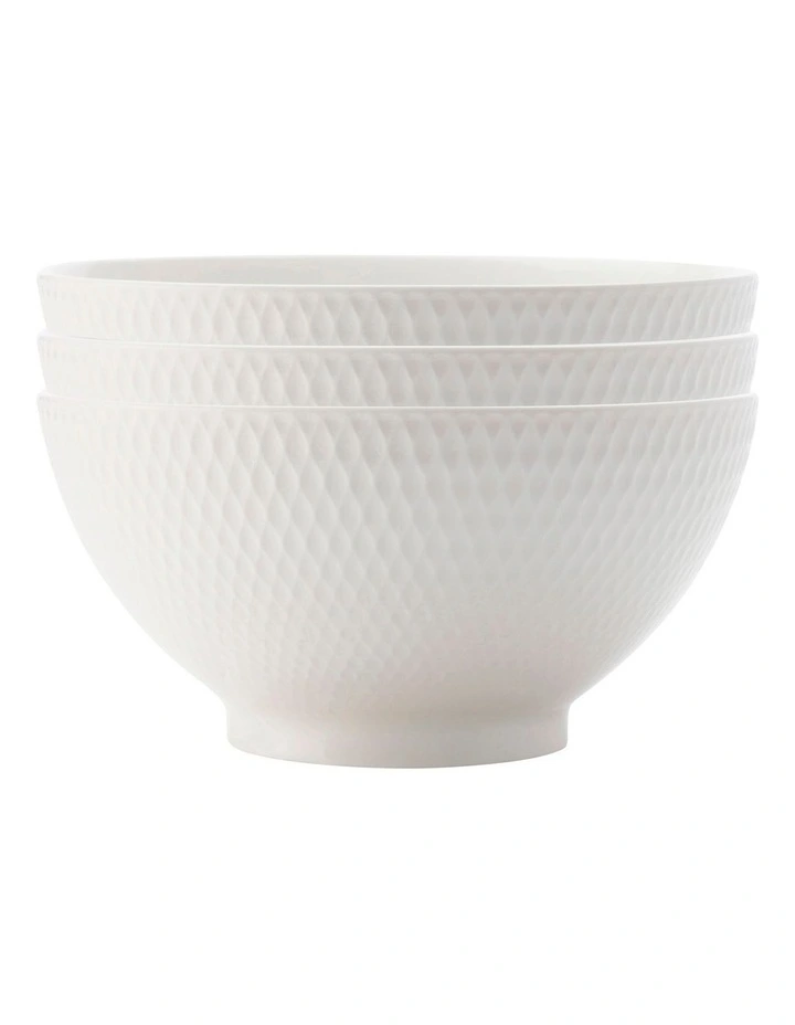 With an understated elegance, the Diamonds range features porcelain embossed with a rippling faceted pattern. Designed to complement any setting, and the ideal partner to the Maxwell & Williams White Basics range.