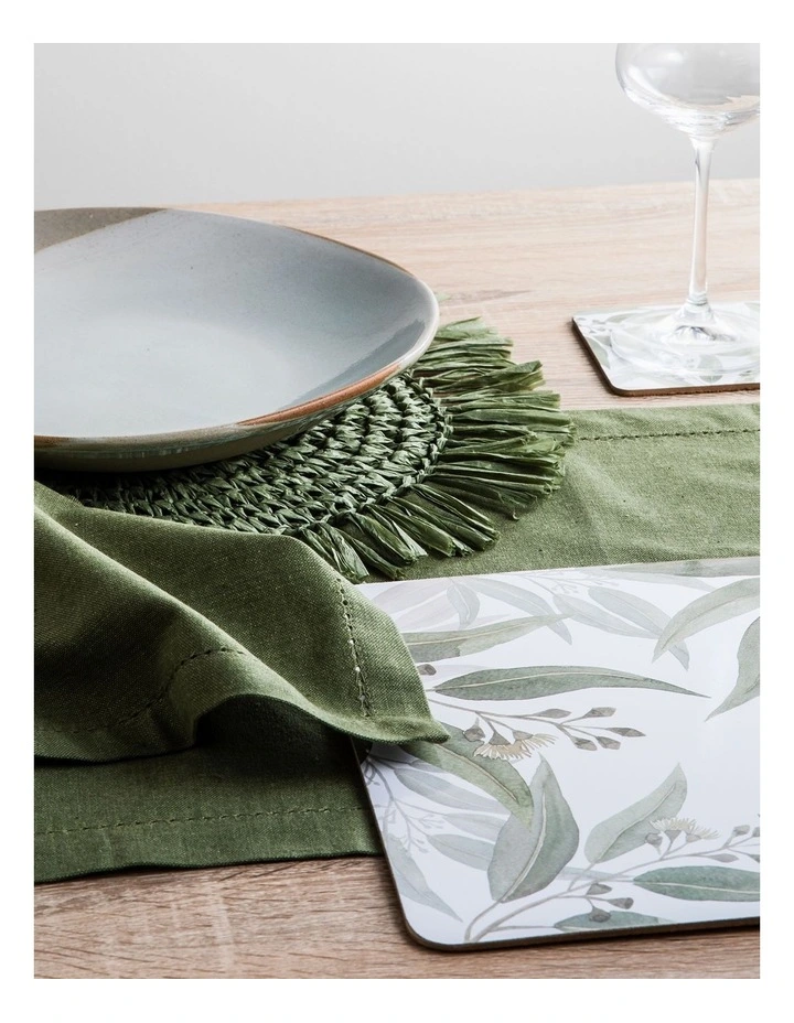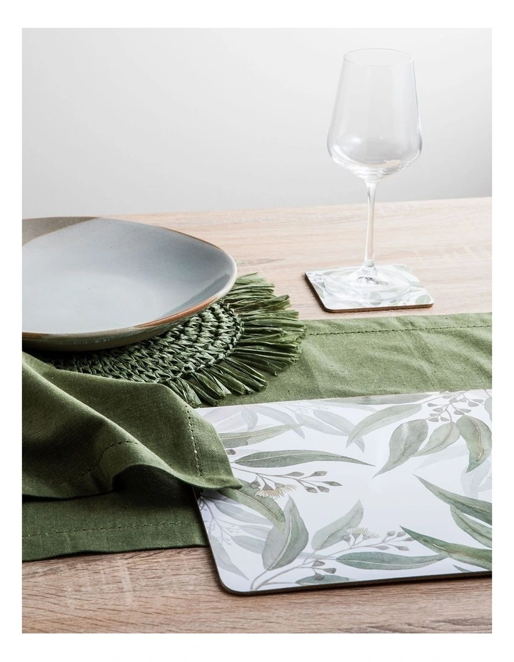 Bring the outdoors in with our Meredith Rectangle Placemat. This hand painted print brings Australian foliage to the table, incorporating soft natural colours and printed on coated MDF with a cork backing for reliability. Comes in a set of 4.