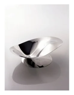 The fruit bowl has a double wall made of stainless steel to look as if it is floating. It stops by itself after a light swing.