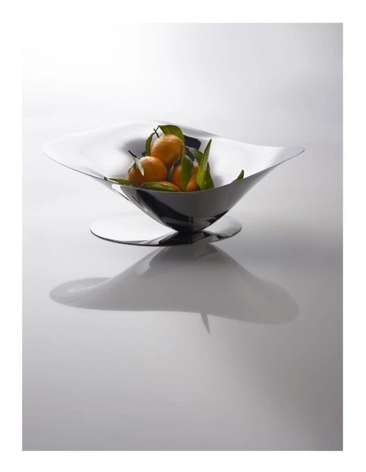 Shape: Suspended kinetic shapeMade from 18/10 stainless steel for its durabilityShiny Plain FinishDesigner: Innocenzo rifino e lorenzo ruggieriMaintenance: Wipe clean with soft, damp clothColour: InoxMaterial: Stainless SteelMade in: ChinaIncluded: 1x Fruit BowlWarranty: 2 Year WarrantyDimensions (H x W x L): 15 x 40 x 30cmWeight: 2kg