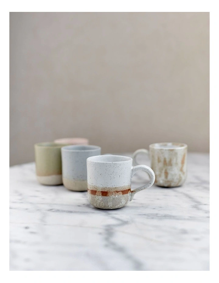 Half dipped in reactive, hand brushed finish, and set on a raw, earthy speckled clay, the Solace mug is a unique addition to your mug collection.