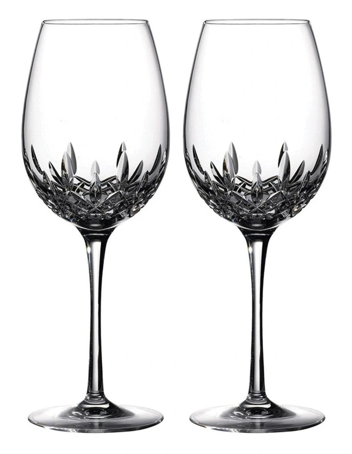 A more modern interpretation of the signature Lismore pattern, Lismore Essence Goblet Pair features long stemmed glassware detailed with understated diamond and wedge cuts.