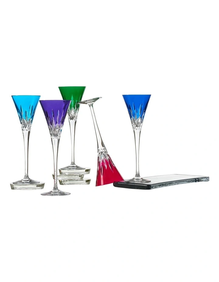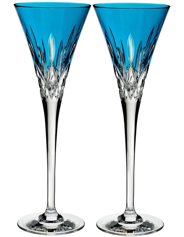 Synonymous with luxury and good living, the Waterford Crystal Lismore pattern has been the number one selling crystal stemware pattern for more than 60 years. Like a celebratory Champagne cork, Lismore’s bold vibrant colours simply POP with effervescent energy and chic sophistication. Live a colourful life with stunning barware in Cobalt, Emerald, Purple, Orange, Aqua, Pink and Clear. The exclusive Waterford colour process brings sharp colours right to the cutting edge, lending Lismore Pops the luxurious look of traditional cased crystal at a price everyone can enjoy. The Aqua Flute Pair will enhance any drink you serve, defying traditional drinkware styling.