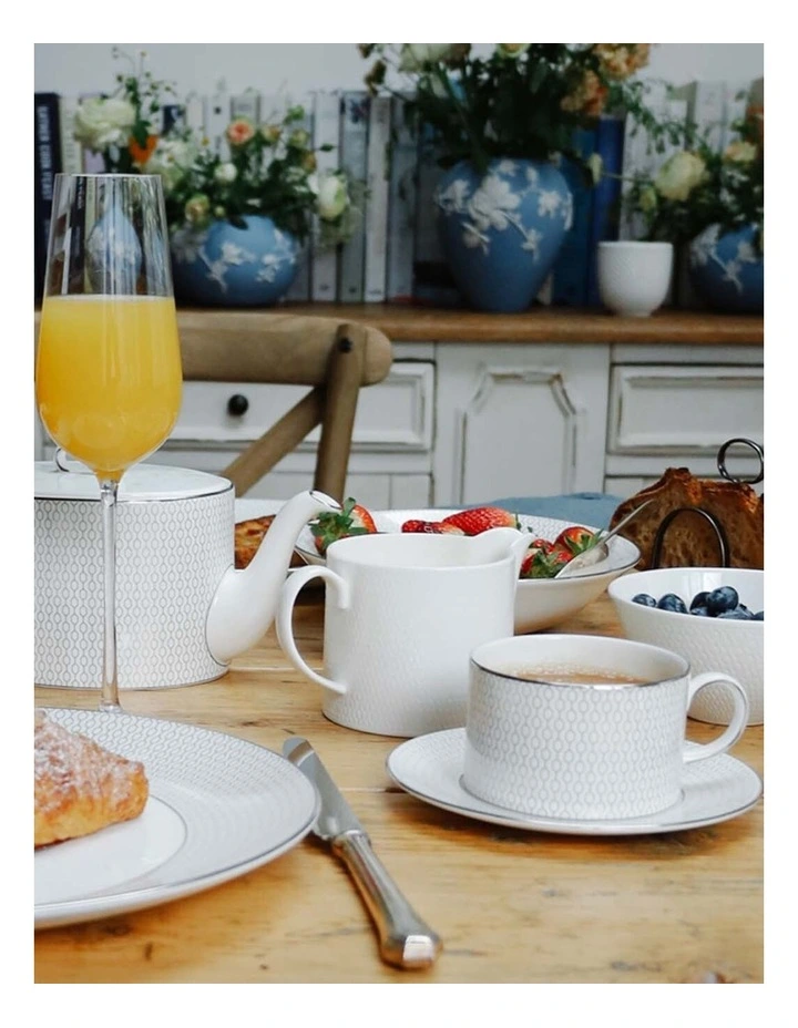 Allowing a space for curiosity and expression, serve the perfect pour with this Gio Platinum Teapot. A gloriously crafted piece made from fine bone china and featuring the Gio Platinum metallic design, it has a 1 litre capacity, which is 4-5 cups of your favourite tea! Create your own teaware collection and tablescape by layering with Gio White and Gio Gold, or go all-in with the Platinum collection. Pour your heart out by gifting Gio to another or to yourself.