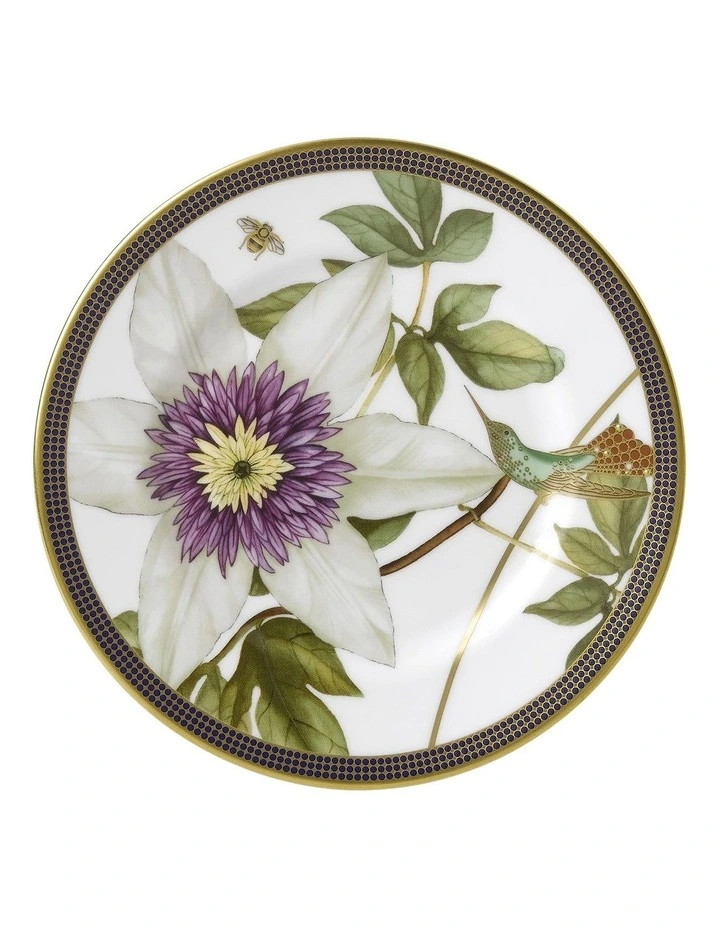 The Hummingbird Plate 15cm features a midnight blue backdrop detailed with vivid flowers and beautiful hummingbirds. Inspired by the beauty of nature found outside, this plate is a striking piece finished with a 22 carat gold accent. Presented in a Wedgwood Prestige gift box